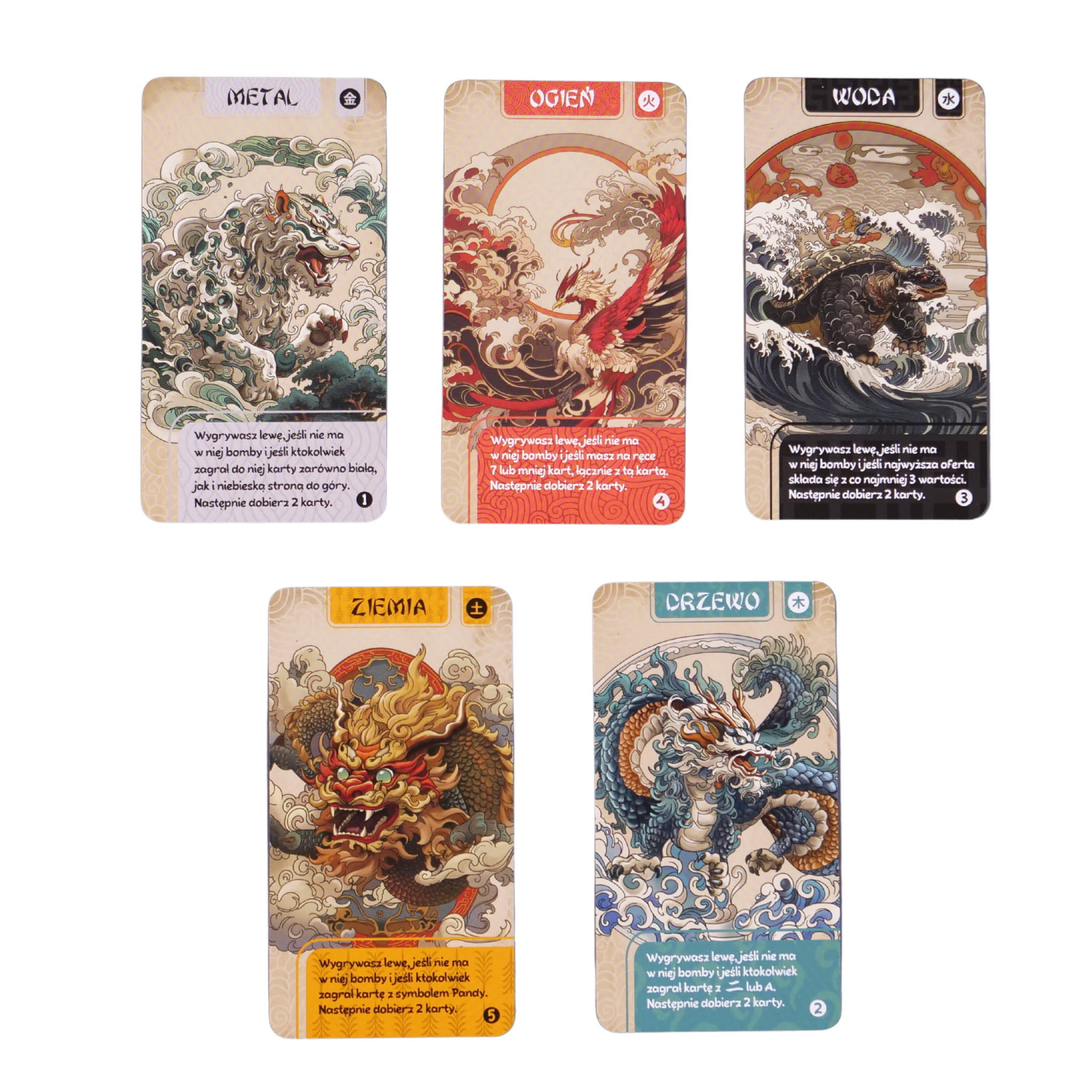 Panda Spin to pięknie ilustrowana gra, na kartach której znajdziecie zwierzęta i żywioły chińskiego zodiaku w towarzystwie tytułowej pandy. Celem gry jest jak najszybsze pozbywanie się kart. W ten sposób wygrywasz rozdania i gromadzisz bambus dla pandy, czyli punkty zwycięstwa w całej rozgrywce.